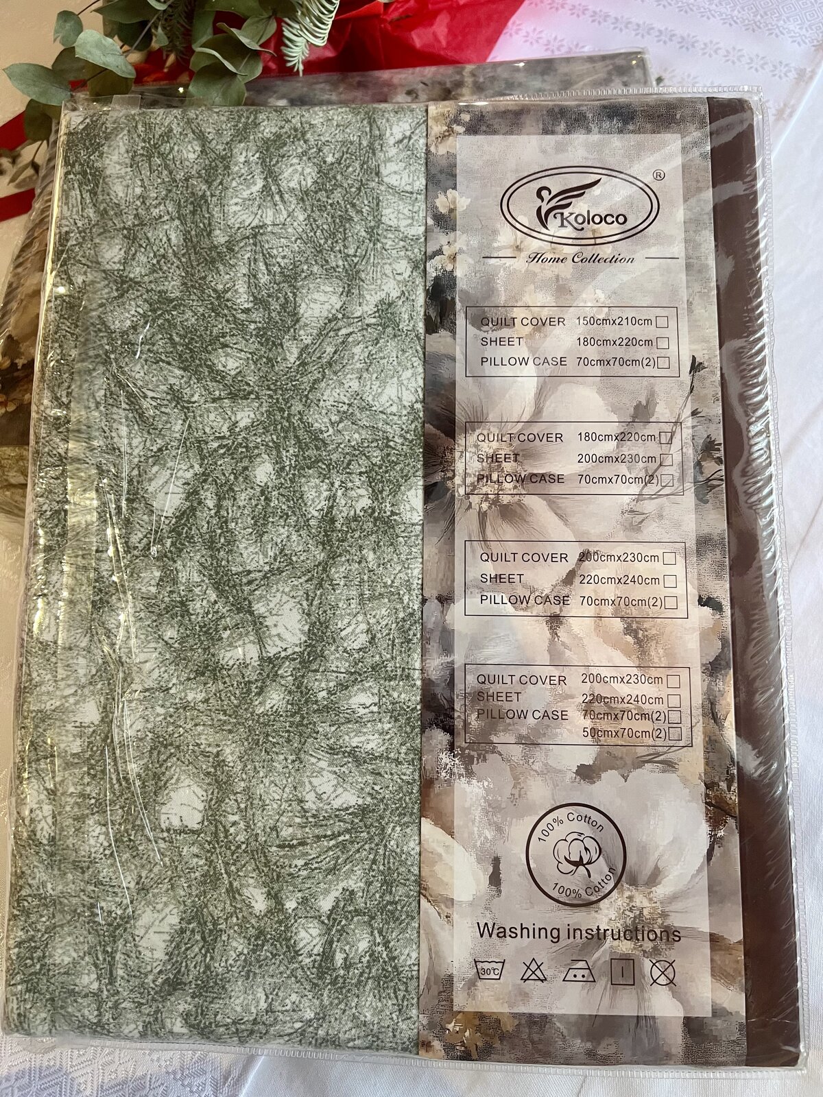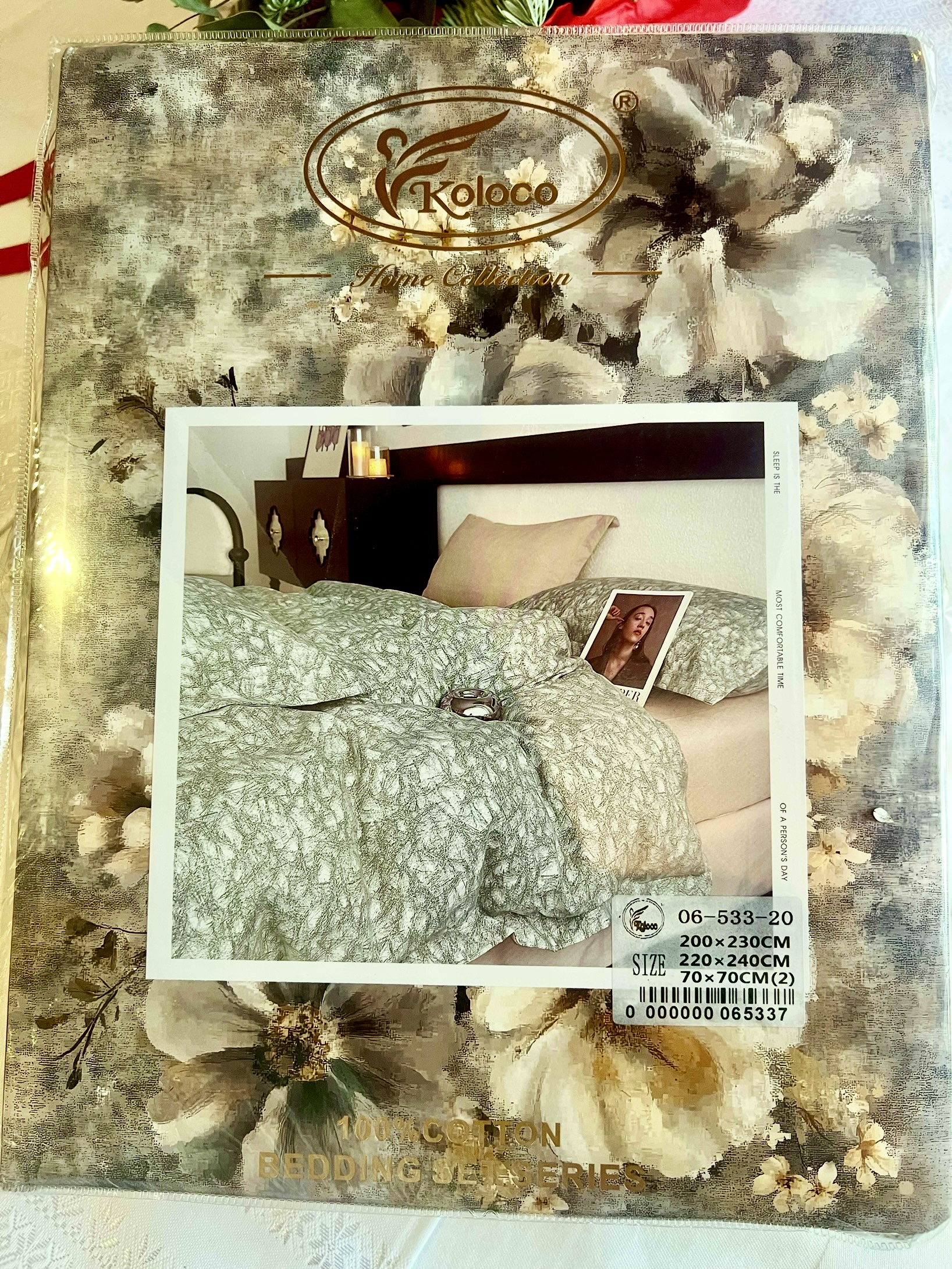 Стильний комплект у нейтральній бежево-сірій гамі з абстрактним текстурним принтом. Ідеально підходить для спалень у стилі мінімалізм.