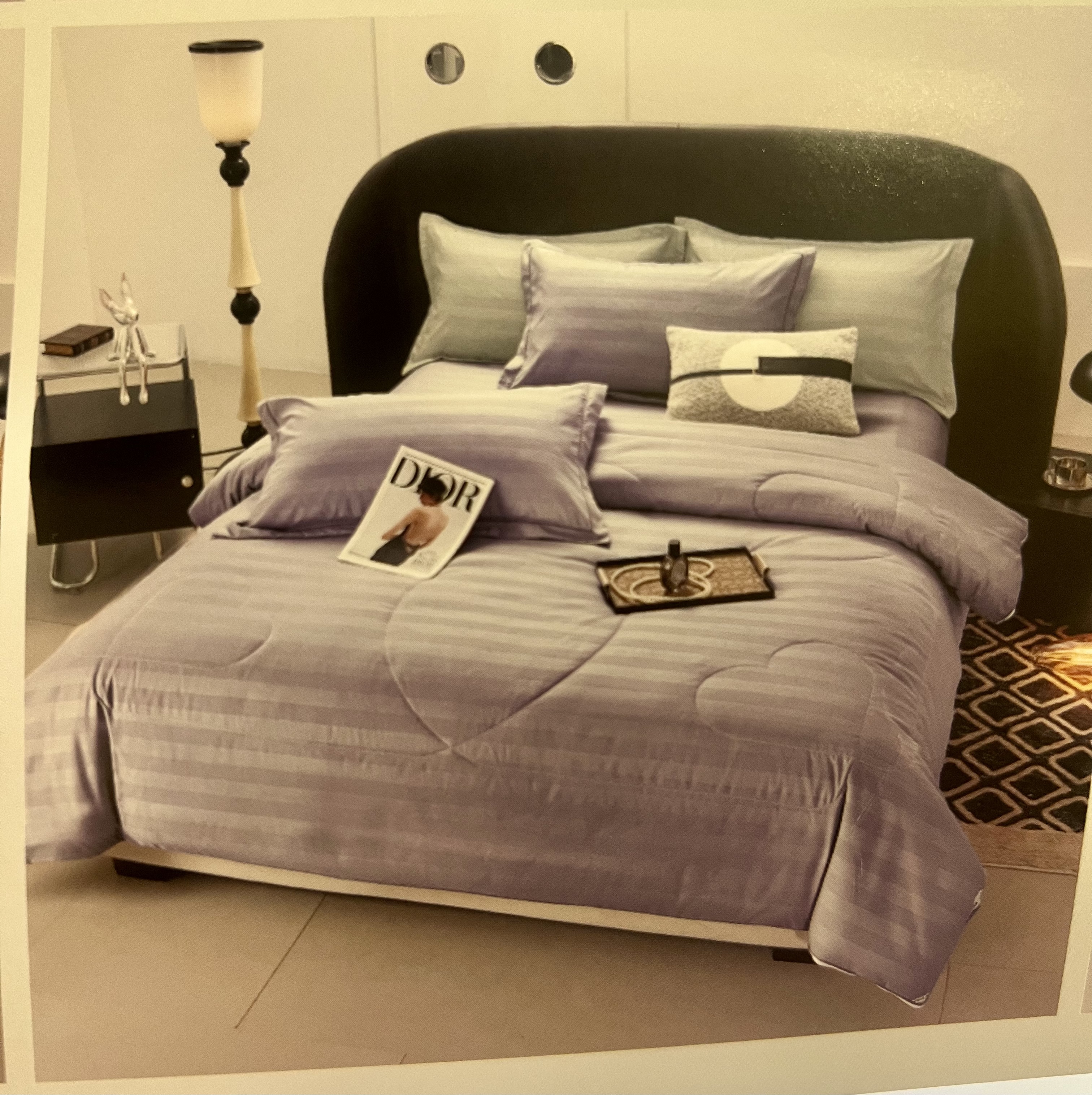 Чарівний комплект у ніжному лавандовому відтінку. Цей колір відомий своїм заспокійливим ефектом, тому ідеально підходить для спальні, допомагаючи розслабитися після насиченого дня. Фактура "страйп" (смужка) додає білизні вишуканого блиску. Набір належить до преміальної серії "2-в-1" з інноваційною подвійною ковдрою, яку можна адаптувати під будь-який сезон за допомогою блискавки.