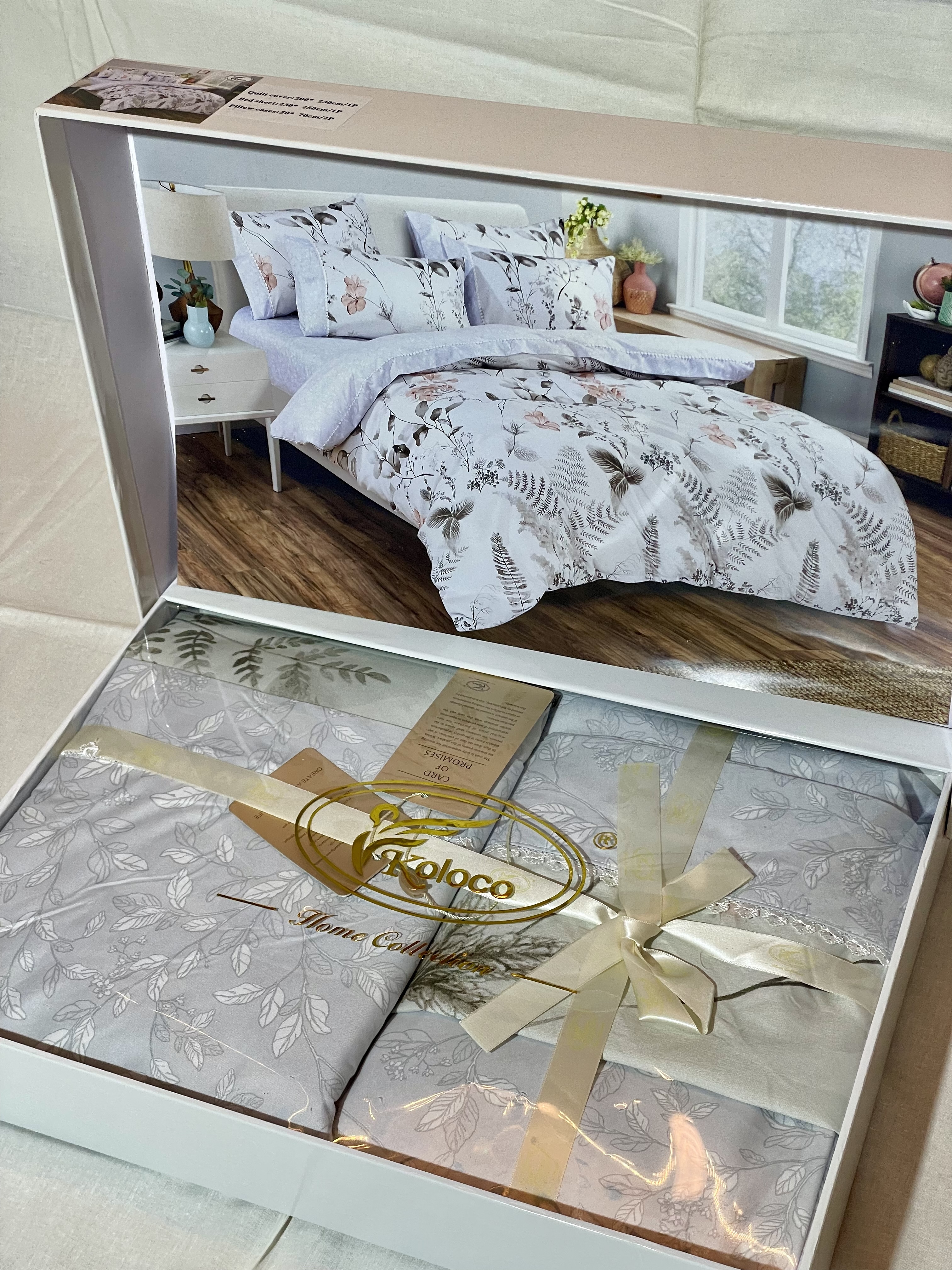Подарунковий комплект постільної білизни Koloco "Блакитний Лист" (Сатин, Євро розмір)