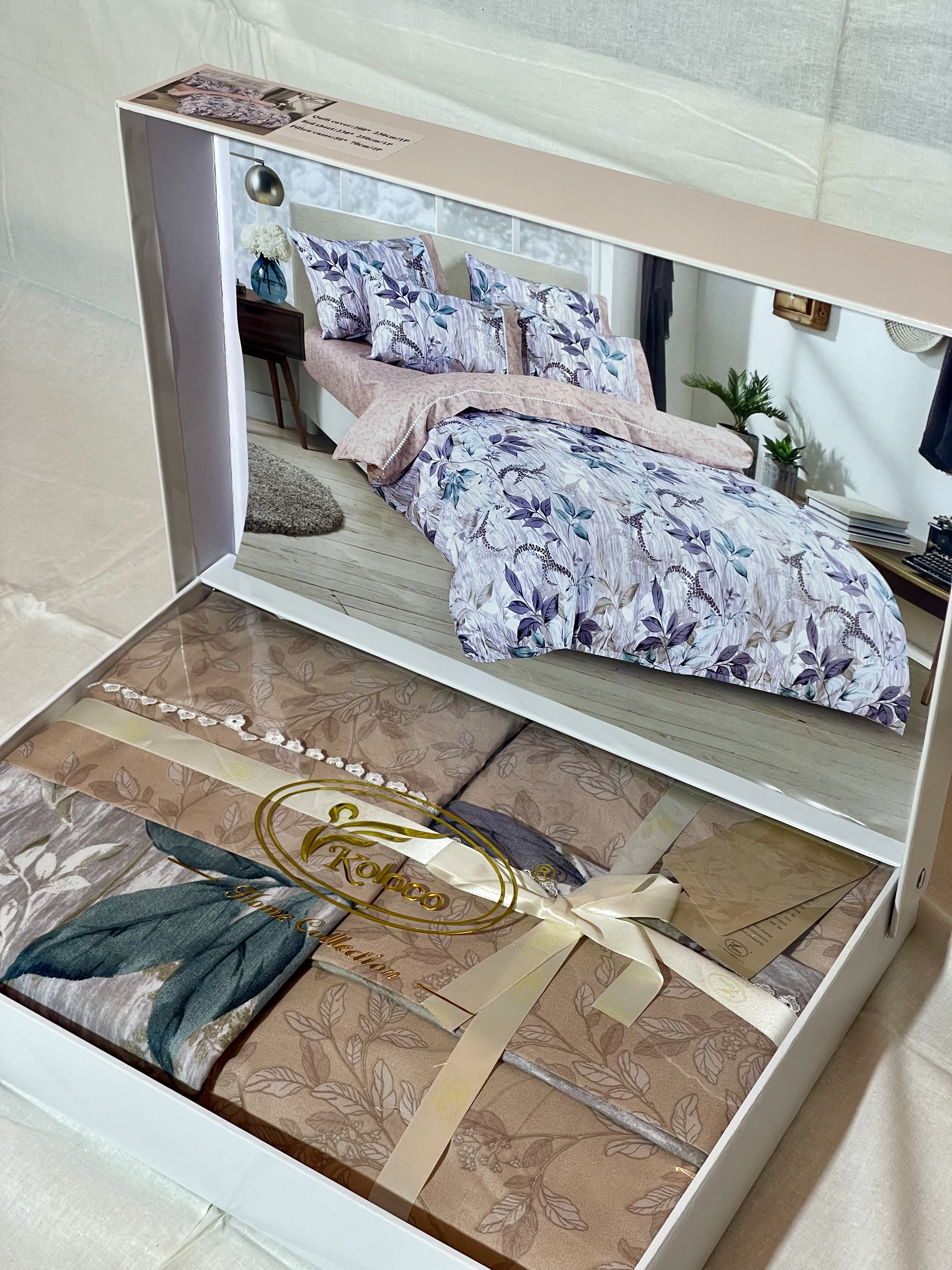 Подарунковий комплект постільної білизни Koloco "Фіолетова Осінь" (Сатин, Євро розмір)